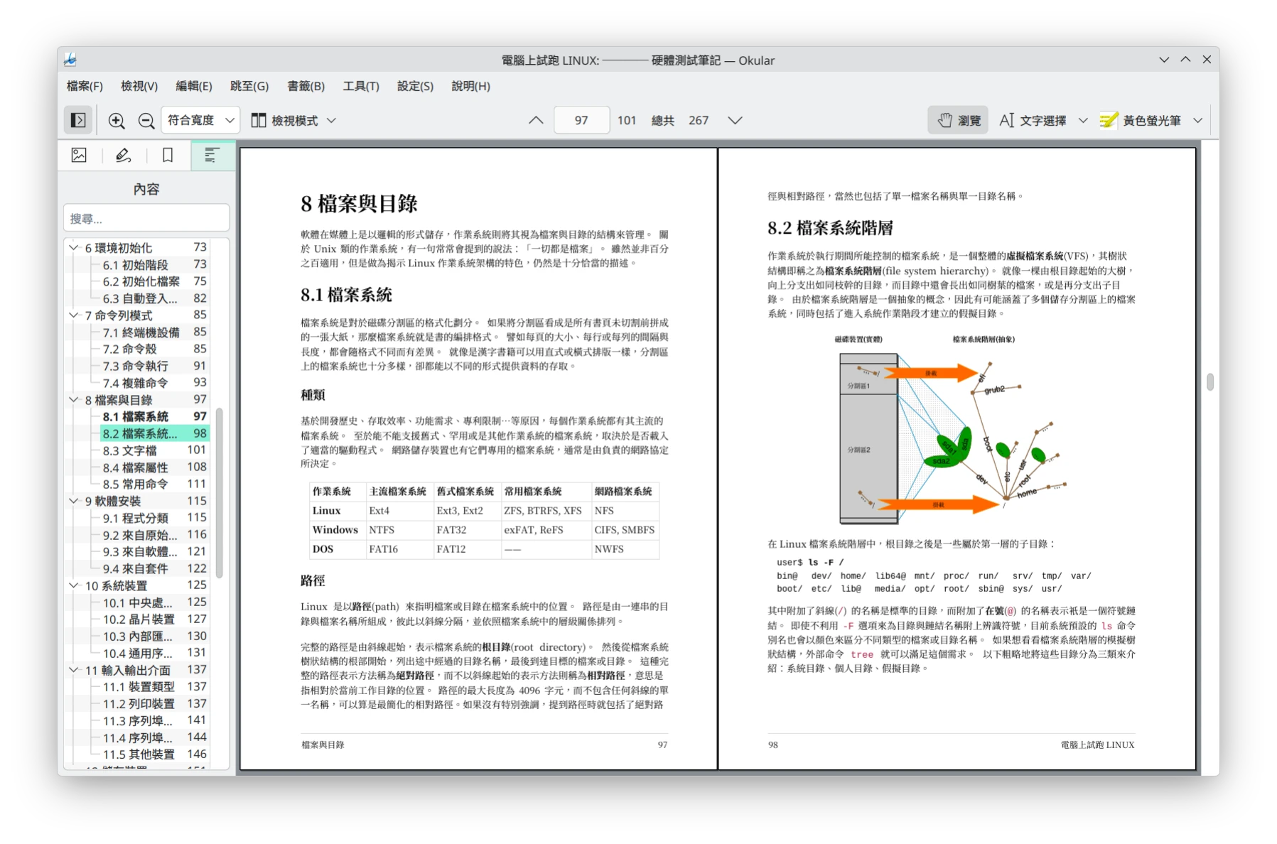 書中以最新版Fedora 43當作例子講解,說明Linux的開機流程、圖形系統、音訊系統、網路連接、電源管理等等操作原理,簡單介紹原理後輔以實際指令操作,使用Systemd作為主要管理系統手段。如果對日常使用Linux自由軟體有興趣的用戶,可以把這本當作實用的工具書查閱,了解系統出問題的時候有什麼指令能協助除錯。