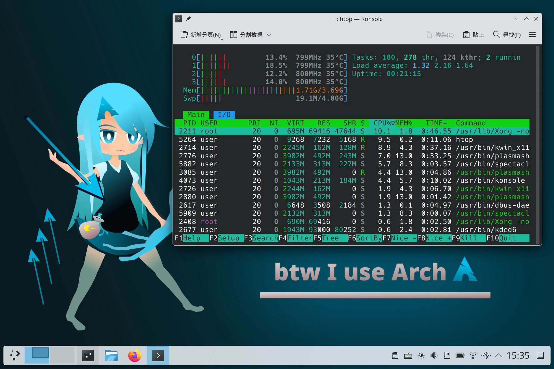 嘗試了幾天後,我將系統切換回了Debian,繼續使用Systemd與KDE Plasma Wayland桌面。