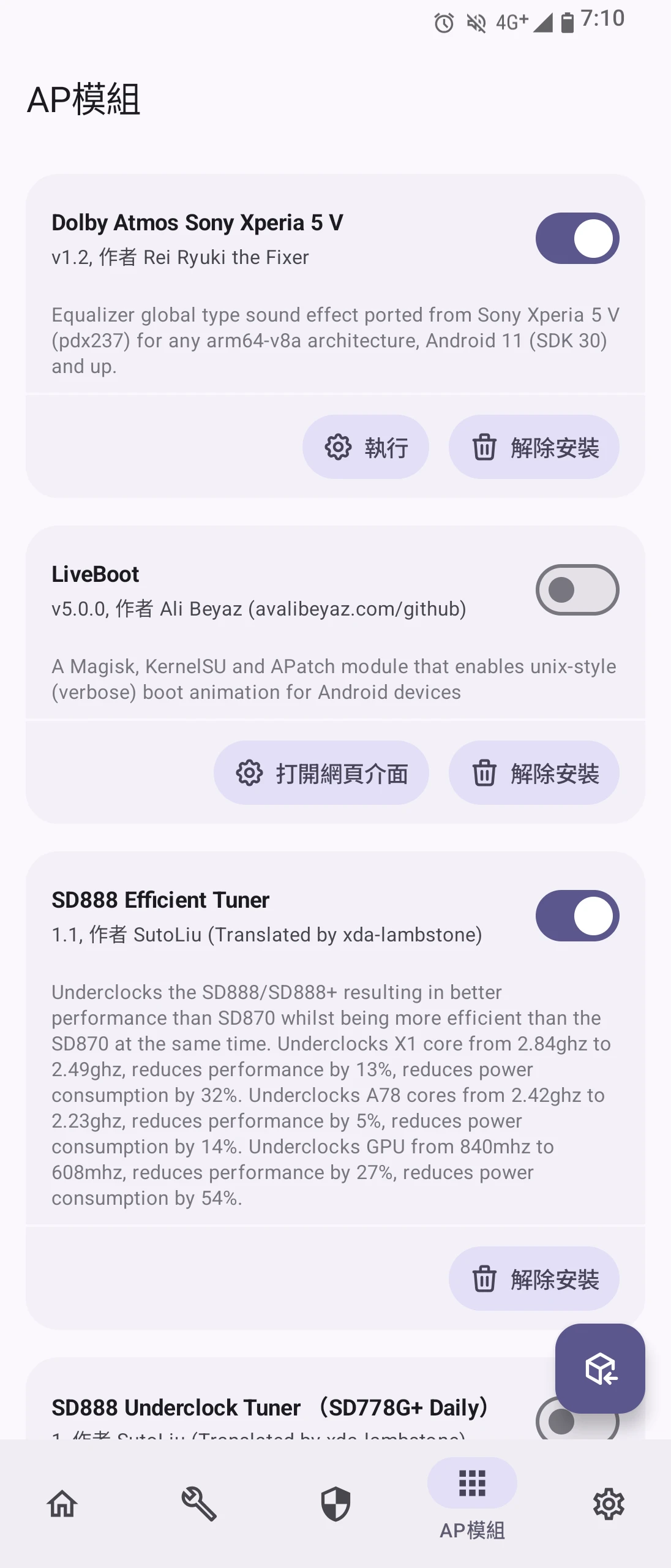 另一個方案,是使用SD888 Efficient Tuning Module,不只降電壓還降低頻率,可以抑制發熱。這個是以Magisk模組方式刷入,方便在管理界面開關模組,自由選擇你想要的「檔位」。