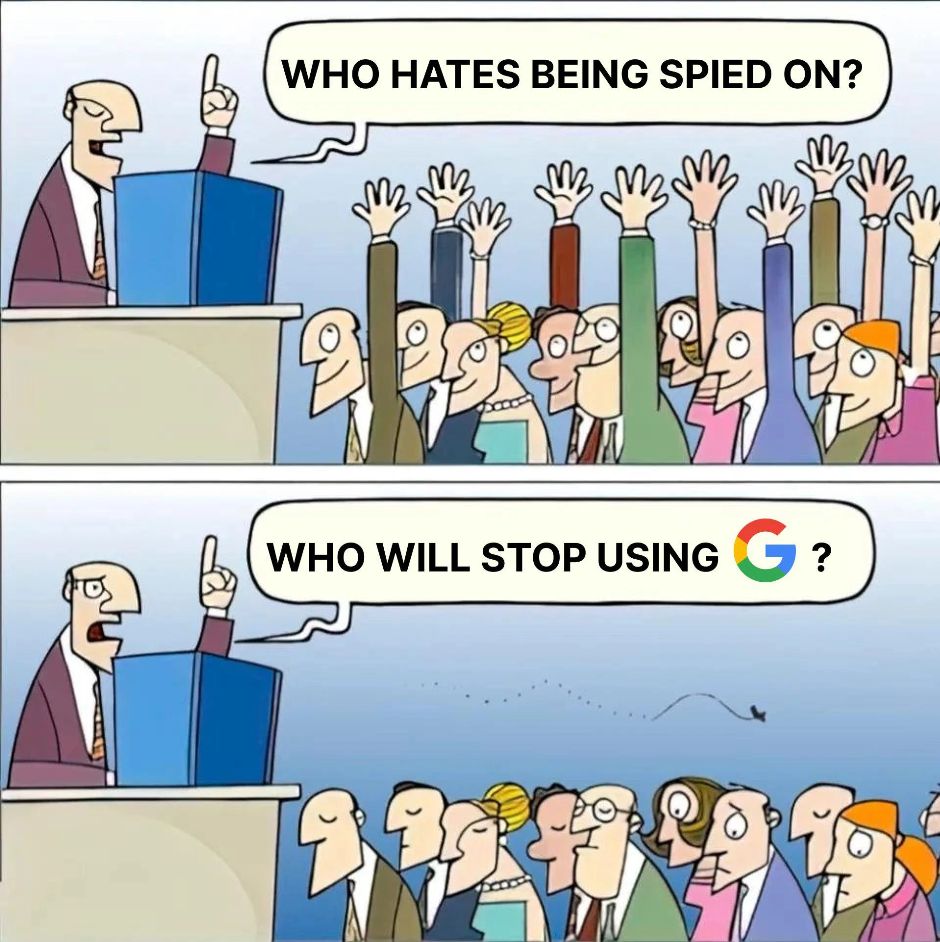 基於degoogle的意識形態,旗幟鮮明的反對Google的一切。即使我還有在使用也要與其鬥爭到底,批判性地使用。