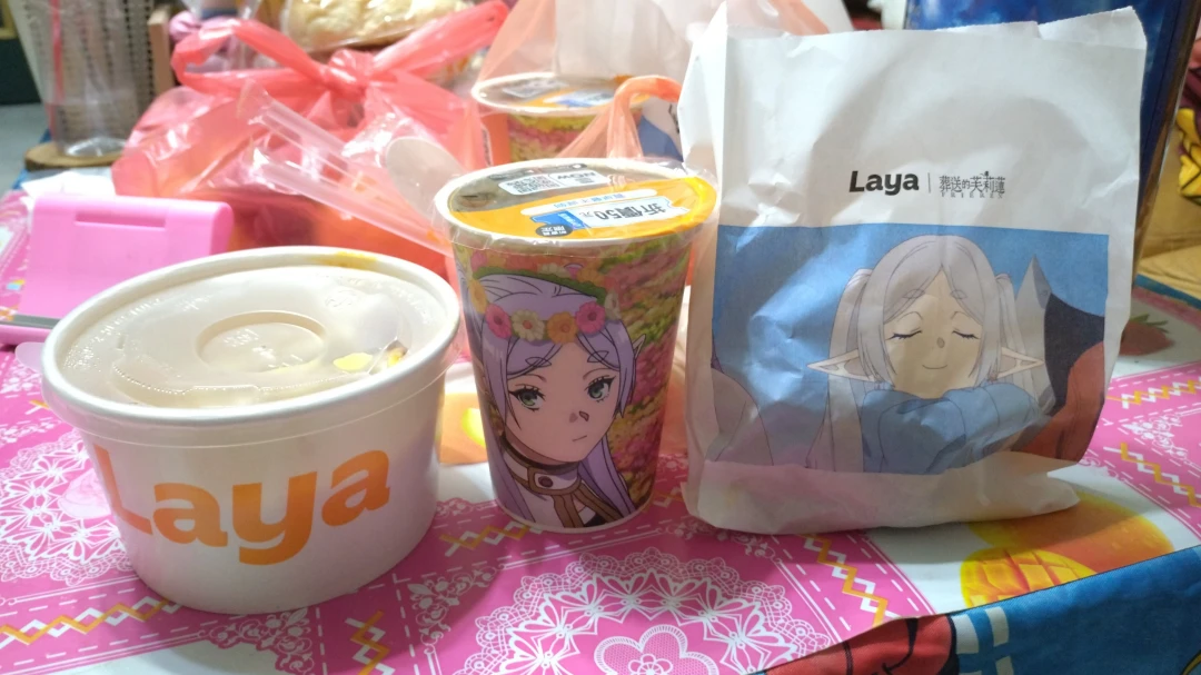 圖片 看到拉亞漢堡總算出了感興趣的動漫聯動,即使很貴也跑去買芙莉連包裝的早餐來吃。結果我家人說:好醜。