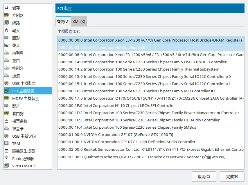- GPU:Intel UHD 630 ← 要直通的GPU