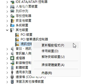 30.0.101.1340驅動,選取zip版的。將其解壓縮。回到裝置管理員,點選「其他裝置」下的「視訊控制卡」,右鍵 → 更新驅動程式 → 瀏覽電腦上的驅動程式,填入剛剛解壓縮的資料夾,讓Windows自動安裝驅動程式。