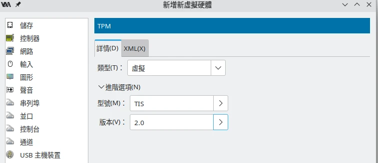 別忘了新增虛擬TPM 2.0硬體裝置