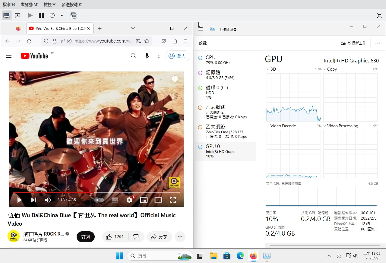 再用工作管理員監控Intel顯示卡有沒有動起來。