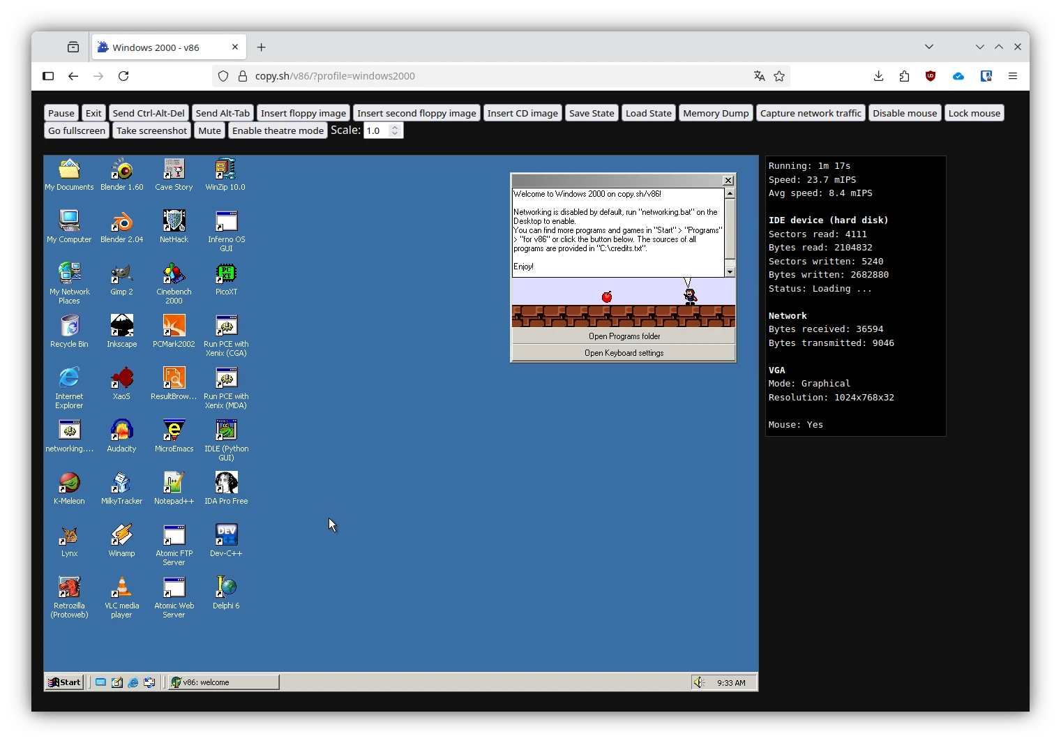 v86 Emulator這個專案好厲害,可以在瀏覽器裡面跑完整的32位元作業系統。
