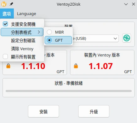 Linux電腦,在Ventoy的目錄對VentoyGUI.x86_64點兩下,開啟圖形界面。