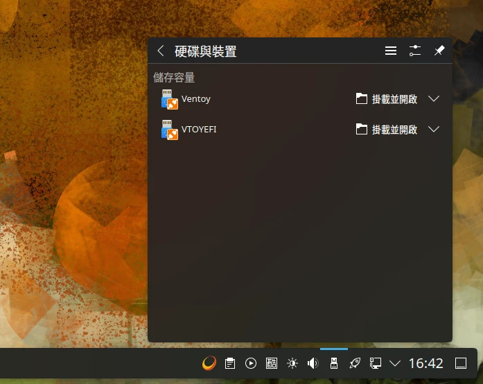 有時候你可能會想把LiveUSB的檔案儲存到隨身碟,但如果用Ventoy跑LiveUSB進入系統,會發現無法掛載Ventoy的分區,像Linux會出現