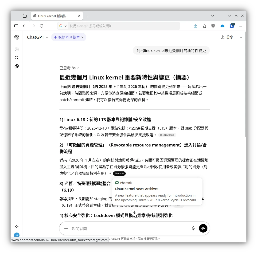 撰文當下的2026年,ChatGPT和Gemini回答問題的時候都會適度參酌網上資訊並給出來源。